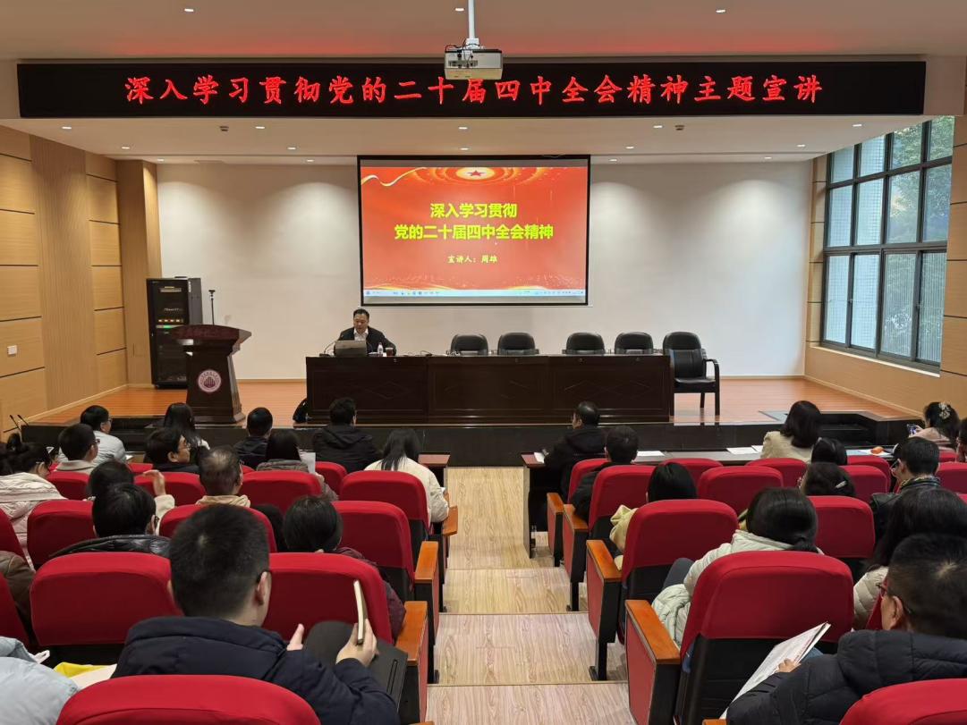 12月9日下午,学校党委常委、副校长周雄在励志楼L119会议室为冶金与动力工程学院和材料与新能源学院全体教职工作党的二十届四中全会精神专题宣讲报告。