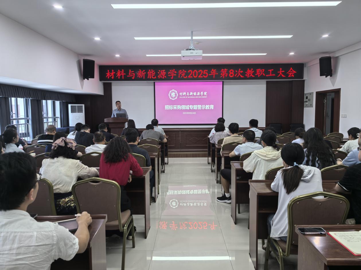 9月24日下午,材料与新能源学院在知行楼M508会议室召开2025年第8次教职工大会。全体教职工参加会议。党总支书记都进学主持会议。