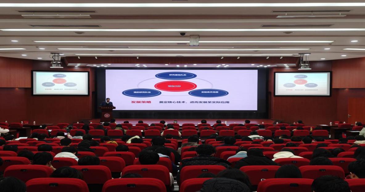 2025年11月22日下午,兰州大学王育华教授做客“智荟巴渝·重科大讲堂”,在学术报告厅为师生带来了题为《照明及显示用发光材料的可控制备与性能调控》的学术报告。报告会由周雄副校长主持,材料与新能源党政领导、科研团队负责、教师代表和研究生、本科生代表300余人参会。